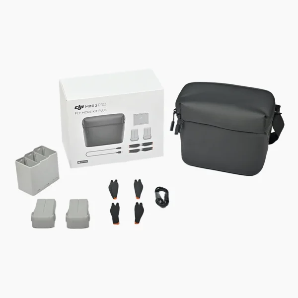 The DJI Mini 3 Pro Fly More Kit Plus is a comprehensive package that includes two Intelligent Flight Batteries Plus, a Two-Way Charging Hub, data cable, a shoulder bag, spare propellers, and screws. It provides extended flight time, efficient charging, noise-optimized propellers, and a spacious carrying solution for your DJI Mini 3 Pro drone. It is designed to elevate your aerial photography experience and help you achieve more with your DJI Mini 3 Pro.